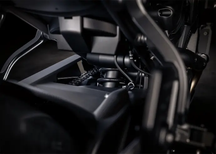 Front Shock | 47 mm inverted fork with electronically adjustable preload and manually adjustable compression and rebound. Aluminum fork triple clamps |