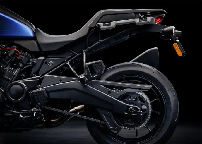 A narrow radiator shroud, reduced-height windshield, and one-piece low seat put you closer to the ground than the Special, with a stance that feels as good in traffic as it does on the open road
