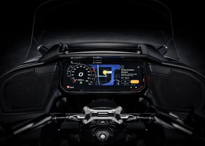 A 312 mm TFT color touch screen powered by Skyline OS delivers 3D map views, natural voice recognition, and full connectivity, all developed for gloved hands and highway visibility. Selectable ride modes (Road, Sport, Rain, and Custom) are integrated directly into the interface, letting you adjust throttle response, engine braking, and traction control with just a tap. Navigation, communication, and entertainment come together seamlessly so your focus stays front and center. .